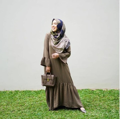 Tampil menggunakan gamis tetap mampu memberikan kesan stylish asal kamu piawai dalam pemilihan modelnya. Salah satunya dengan aksen lengan terompet yang sedang nge-hits belakangan ini. Look seperti ini cocok kamu pakai untuk acara formal ya, Ladies.