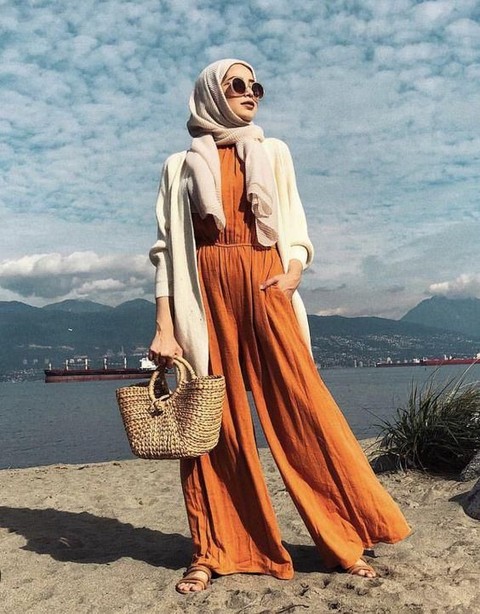 Foto: https://id.pinterest.com/Kalau Ladies punya jumpsuit denim atau polos di lemari, dan sudah mulai bosan saat menggunakannya. Kamu bisa mengatasinya dengan menggunakan hijab dengan berbagai macam motif seperti floral, atau pattern lainnya. Tak perlu takut, pattern apapun pasti cocok dengan jumpsuit kamu. Jika ingin aman, Ladies bisa pilih hijab dengan warna yang hampir sewarna dengan jumpsuit kamu, atau memiliki pattern dengan warna dominan yang netral.