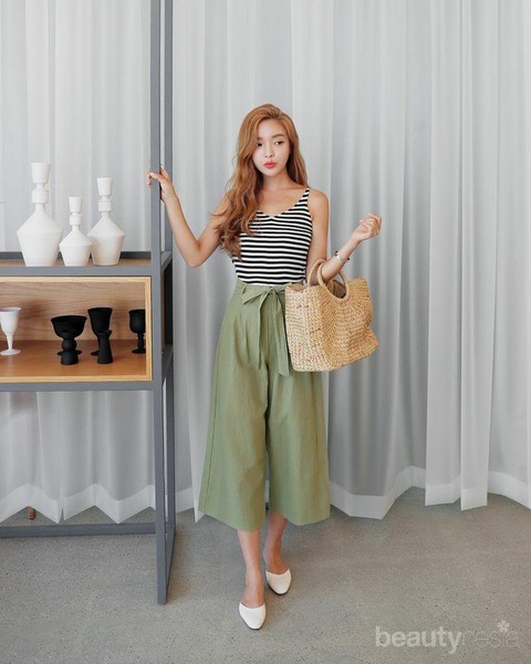 Foto: IstimewaMules shoes juga bisa kamu gunakan saat berlibur. Padukan atasan atau tanktop dengan kulot pendek dan tas jerami. Atasan dengan gaya stripe dan mules shoes berwarna putih terlihat manis, Ladies.