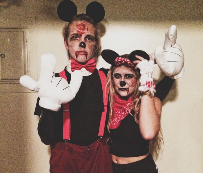 Kamu bisa mengambil inspirasi dari beberapa adaptasi “creepy Mickey” yang viral di internet dan memberi sentuhan akhir dengan aksesori seperti sarung tangan berdarah dan topi rusak.
