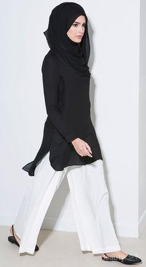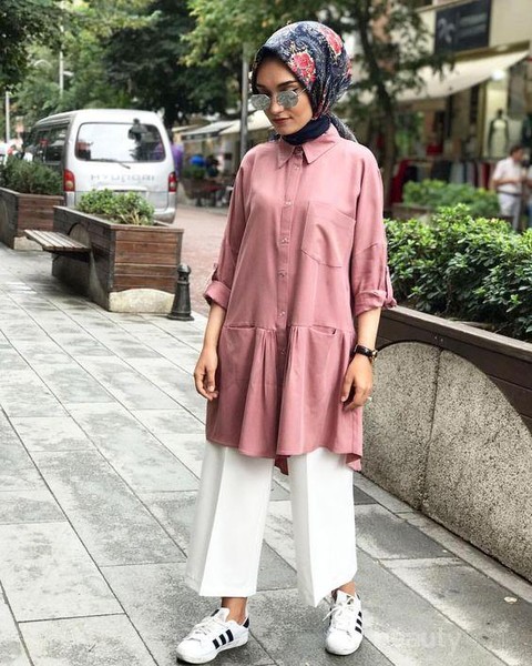 Kalau kamu termasuk hijabers yang hobi bergaya santai, kamu bisa memilih atasan tunik yang simple dengan warna putih polos. Untuk mendapatkan gaya yang lebih kekinian, padukan dengan sepatu kets atau sneakers. Siap tampil dengan style hijab yang stylish seharian deh!