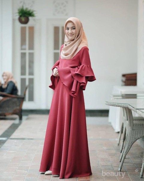 Foto: IstimewaAgar tidak terkesan monoton, pilihan gamis modern dengan detail ruffle pada bagian lengannya bisa membuat tampilanmu terlihat lebih manis. Pilihan warna hijab yang berbeda seperti Alyssa Soebandono ini, juga bisa membuat tampilanmu tidak terkesan membosankan. Kamu bisa memasangkan gamismu dengan warna hijab yang lebih mencolok atau dengan hijab motif.
