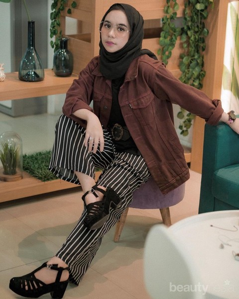 Selain motif strip yang nggak lekang oleh waktu, ada juga fashion item timeless yang bisa dipakai semua kalangan. Yap, denim jacket ini memang terkesan old school. Namun jika dipadukan dengan model baju yang lebih kekinian, tentunya tampilan nggak akan terlihat jadul. Buktinya, Nabila Tarmuzi masih tetap terlihat keren dengan denim jacket warna cokelat yang dipadukan dengan celana kulot bermotif strip serta clogs.