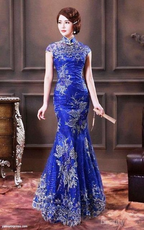 Foto: https://jual.store/wp-content/uploads/2018/01/189-Dress-Batik-Modern-Kombinasi-Brokat-2018.jpgBlue Cheongsam Dress