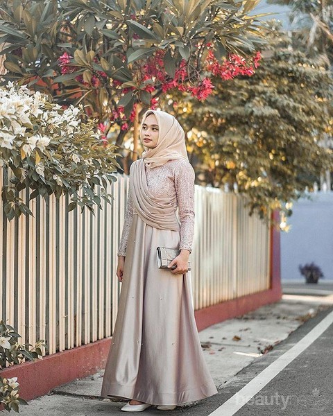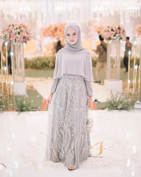 Tak lupa dengan hijab berwarna senada dan mahkota yang tampak menghiasi kepalanya. Mahkota tersebut bisa jadi inspirasi kamu saat harus menghadiri acara kondangan seperti iti loh, ladies. Kamu bisa tampil seperti princess ditengah banyak tamu yang lain.