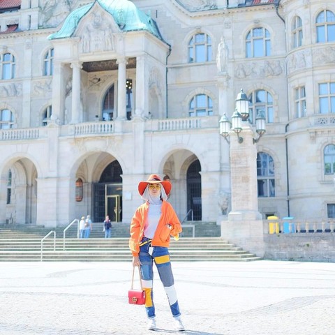 Nah, kali ini Iymel bergaya nyentrik dengan menggunakan warna serba terang seperti jacket orange, topi serta sling bag-nya. Selebgram hijab yang satu ini juga memilih memakai celana jeans yang sedang kekinian banget. Gimana ladies, keren kan gayanya Iymel?