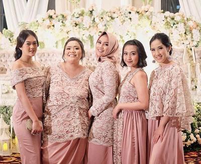 dustpink memberikan kesan manis dan feminin. Dari bahu sabrina sampai model kurung bisa jadi inspirasi kebaya brokat untuk tahun baru nanti