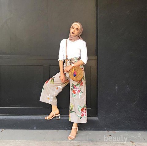 Last but not least, perpaduan fashion item dengan motif bunga yang juga sedang banyak disukai oleh para hijabers adalah celana kulot. Celana dengan potongan lebar ini tidak hanya nyaman, tetapi juga membuat siapapun yang memakainya terlihat semakin tinggi dan jenjang. Agar terlihat lebih cantik, padukan kulot motif bunga dengan blouse atau kemeja kesayangan kamu. Dijamin cocok dan nyaman banget untuk dipakai ke kampus atau kantor.