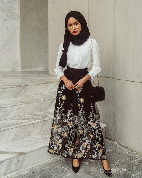 Jika kamu ingin terlihat lebih feminin dengan padu padan fashion item berupa rok, perpaduan rok motif bunga-bunga dan kardigan akan menjadi tampilan yang pas untuk kamu. Rok yang kamu pilih bisa berupa rok span ataupun rok rimpel yang lebar. Yang pasti, pilihlah warna yang senada agar style kamu semakin terlihat cantik.
