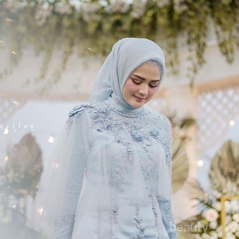 Foto: IstimewaSelain itu aksen bordir bunga dengan tambahan aksen beaded nuansa silver membuat penampilan wanita berdarah Aceh ini terlihat begitu menawan. Hijab berwarna senada menjadi pilihan Chika untuk menyempurnakan penampilannya di hari pertunangannya.