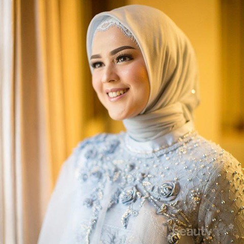 Foto: IstimewaBentuk alis yang on point namun tetap terlihat natural dan tidak berlebihan. Selain itu pemilihan blush on berwarna pink peach dan lipstik warna nude menyempurnakan makeup flawless Chika. Terliihat wajah merona dibalut dengan hijab senada dengan gaunnya, Chika menambahkan inner hijab untuk memberi kesan lebih rapi.