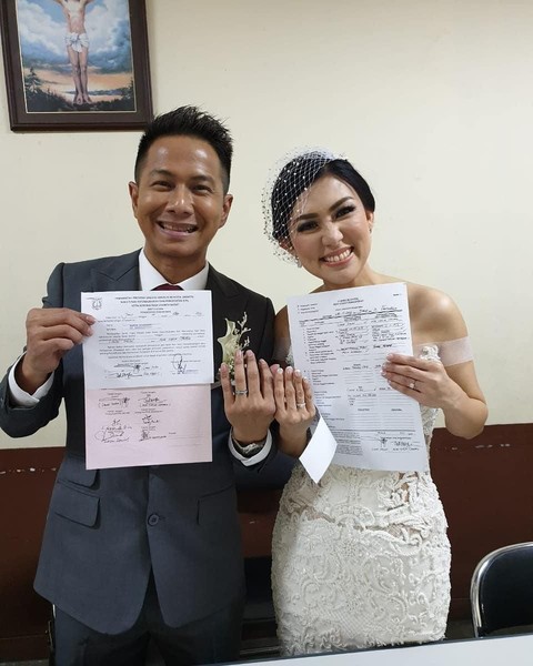 Foto: IstimewaDengan senyum semringah, Delon dan Aida di Instagram masing-masing memamerkan sebuah kertas pertanda sah menjadi sepasang suami-istri. "Mr.& Mrs Delon Thamrin," tulis Delon pada keterangan foto yang dipostingnya.