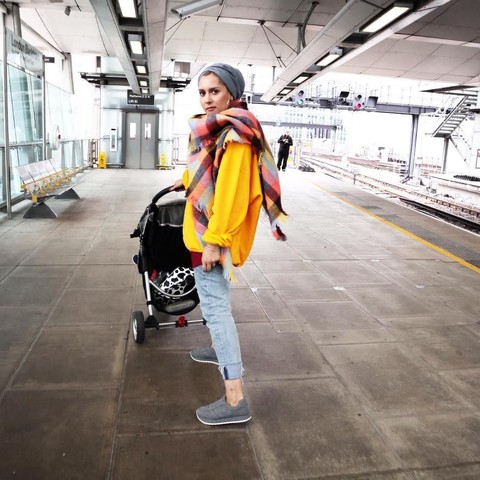 Warna hijab abu-abu memang cocok dipadukan dengan warna lain, salah satunya adalah dengan warna terang seperti kuning maupun pink. Dengan menggunakan warna hijab abu-abu, warna outfit kamu yang terang akan menjadi statement dari tampilan kamu.