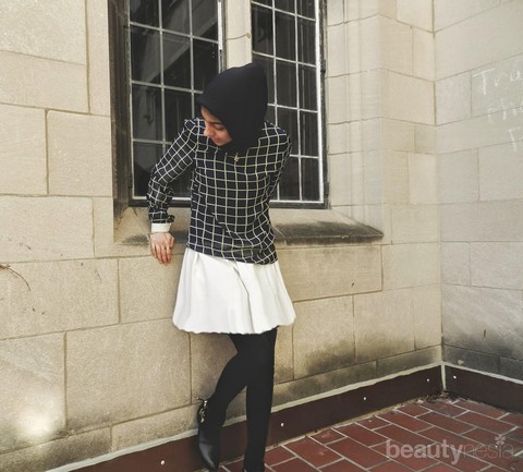 Ingin tampil feminim dengan sepatu boots? Bisa banget lho ladies. Kamu bisa lihat inspirasi berikut ini yakni memadu padankan hijab style kamu dengan sepatu boots kulit berwarna hitam yang dipadu padankan dengan dengan rok mini dan legging. Tampilan ini cocok banget kamu kenakan untuk pergi ke kampus atau hangout bersama teman ke mall.