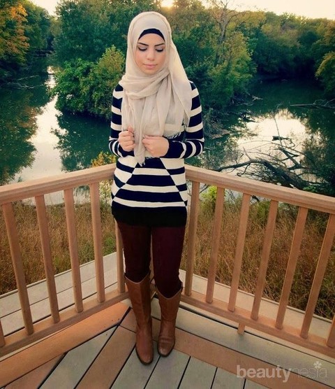 Jika kamu merencanakan liburan bersama keluarga ke tempat-tempat yang udaranya dingin, seperti pegunungan atau ke luar negeri yang tengah dilanda cuaca yang dingin, inspirasi hijab style dengan memadu padankan long boots dan sweater berikut ini bisa jadi inspirasi kamu yang ingin tetap tampil fashionable. Sekadar informasi nih ladies, gaya busana long boots ini sedang digemari oleh banyak wanita si Eropa dan Amerika untuk street fashion mereka lho. Kamu sendiri jangan mau ketinggalan dong!