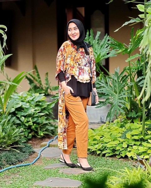 Mengenakan outfit dengan dominan warna terracotta bukan berarti akan selalu nampak bagus jika dipadukan dengan warna senada. Sesekali kamu bisa coba memadukan atasan motif berwarna dasar terracotta dengan sedikit aksen berwarna hitam. Warna hitam juga akan menjadi fokus yang menonjol pada penggunaan jilbab segiempat. Sementara warna terracotta masih akan nampak serasi dengan bawahan. Jika kamu hijabers Indonesia enggak ada salahnya buat mencoba.