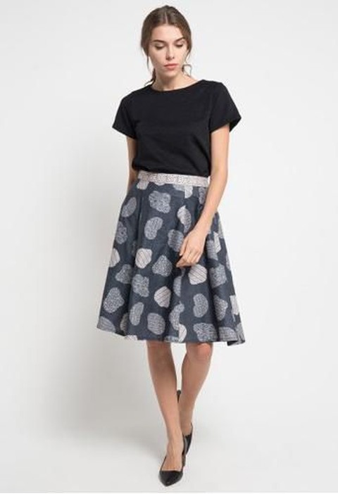 Rok flare batik bernuansa monokrom ini cocok menemani saat jalan jalan santaimu bersama keluarga ataupun teman teman. Model dan warnanya membuat kamu mudah untuk memadankannya dengan atasan apa saja, kemeja polos, kaos polos, kaos turtle neck, dan lainnya. Karet di bagian pinggangnya juga dapat menyesuaikan dengan lebar pinggangmu, kamu bisa membelinya disini
