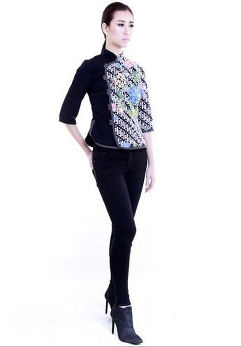 Model baju batik kombinasi seperti ini memang lagi hits banget nih, Beautynesian. Warna hitamnya memudahkan kamu memadankannya dengan bawahan apa saja. Seperti look ini, kamu terlihat sangat fashionable dengan batikmu yang dipadankan dengan jeans hitam dan ankle boots. Batik kombinasi ini bisa kamu beli disini