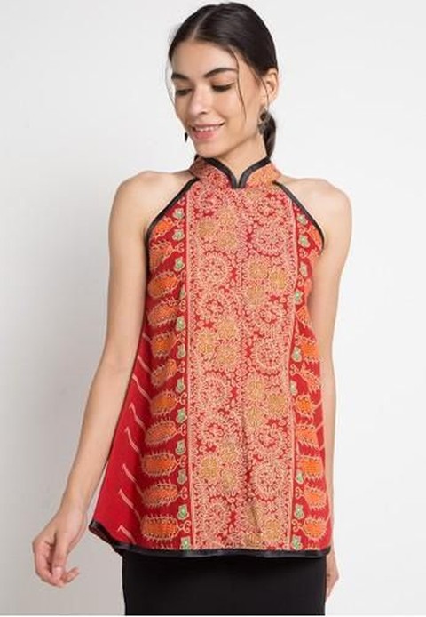 Model baju batik atasan tanpa lengan ini cocok banget untuk gaya remaja kamu yang masih ingin bebas dan menampilkan pesona cantikmu. Warna merah dengan motif batik print ini membuatmu terlihat dominan. Kerah stand up membuatmu terlihat berbeda dan menawan. Kamu bisa menggunakan model batik ini dengan jeans hitam atau kulot dengan warna netral. Kamu bisa membeli atasan batik ini disini