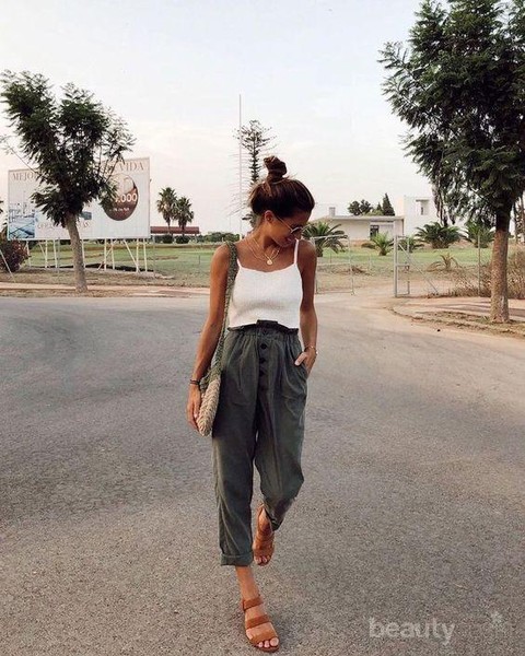 Tampil dengan gaya simpel dan nyaman adalah kunci utama untuk membuat liburanmu ke pantai menjadi menyenangkan. Salah satu kombinasi yang cukup direkomendasikan adalah perpaduan antara pegged pants dan tank top. Padu padan ini sangat mewakili tren fashion kekinian anak muda yang simpel dan minimalis.