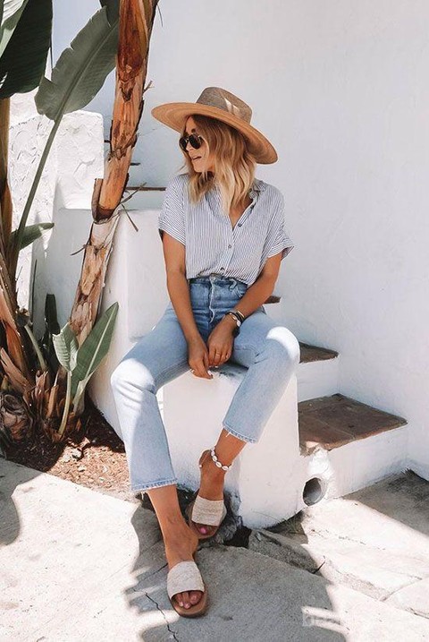 Tidak ingin menceburkan diri ke air? Kamu bisa mengenakan jeans dan kemeja yang untuk digunakan saat menikmati liburanmu di pantai. Kombinasi ini akan semakin manis jika disandingkan dengan topi dan sandal berbahan rotan atau anyaman. Jangan lupa pula untuk mengenakan kacamata hitam. Kamu siap untuk menikmati suasana liburan dengan memandangi ombak dari kursi kafe.
