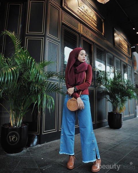 Terakhir, gaya semi casual yang digunakan oleh Nisa Cookie satu ini juga wajib kamu coba. Warna merah dan hitam memang terlihat hidup dalam padanan yang style hijab dengan tone yang seimbang. Cantik banget, ya!