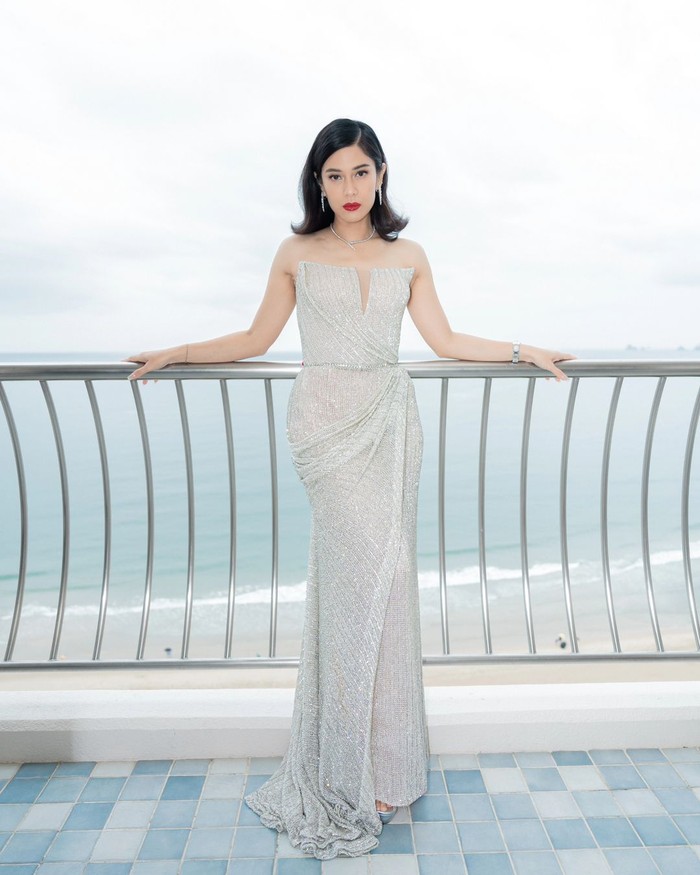 Lewat arahan gaya Hagai Pakan, Dian Sastrowardoyo tampil memukau dengan gaun kristal dari Hian Tjen, perhiasan berlian dari Bulgari, serta jam tangan silver. Gaunnya hadir tanpa lengan dengan detail drapery yang anggun.