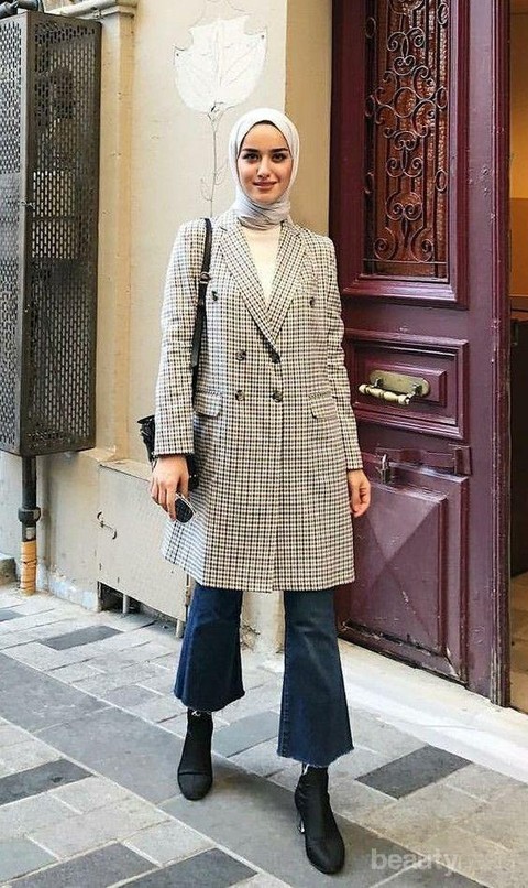 Foto: https://id.pinterest.comMix and match celana jeans untuk hijabers selanjutnya adalah mengenakan long coat. Fashion item ini akan membuat hijabers tidak terlihat sexy meski mengenakan celana jeans. Untuk membuat penampilan lebih standout, kamu bisa menambahkan boots heel dengan warna senada.