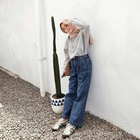Selebgram yang akrab disapa Yure ini tampil santai dengan memakai kaos oversize dan celana jeans oversize. Buat kamu yang bertubuh langsing, kamu bisa memakai baju seperti ini agar tubuhmu terlihat lebih berisi lho ladies! Tampilan casual ini bisa kamu gunakan saat ingin nongkrong ke mall bersama teman-temanmu.Kamu bisa melengkapinya dengan hijab casual dan sneakers putih seperti Yure. Tampilan sporty akan menambah inspirasi look buat teman-temanmu bukan?