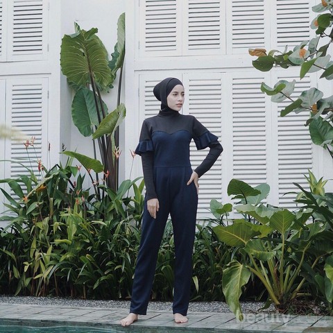 Kalau berenang adalah olahraga favorit yang sering kamu lakukan, maka kamu butuh banget sebuah swimsuit atau pakaian renang yang sesuai dengan style hijab. Dalam hal ini pakaian renang harus menutupi seluruh aurat. Kamu bisa memilih one piece two tone swimsuit yang memmiliki detail flare pada bagian lengan dan dua warna yang berbeda. Walau di kolam renang, kamu masih bisa tampil keren.