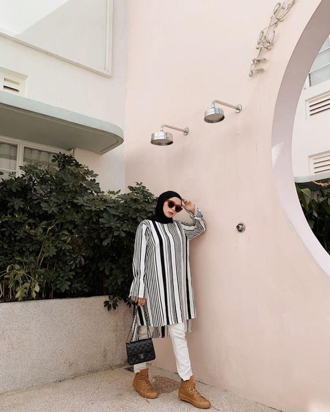 Foto: IstimewaBaju oversize dengan model turtleneck ini juga sedang digemari lho, kamu bisa memadukan dengan kreasi hijab yang lebih simpel. Lalu celananya bisa kamu memakai jeans atau celana pendek agar baju stripe memiliki kesan kuat.