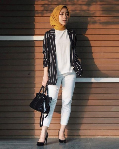 Foto: IstimewaJika kamu ingin tampil smart kasual. Kamu boleh mengganti blazer polos dengan blazer stripe dengan inner warna putih. Dipadankan dengan jeans atau celana kulot dan memakai high heels lalu tas sebagai sentuhan terakhir.