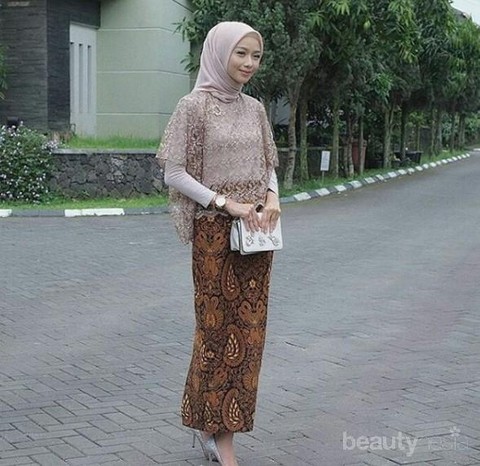 Inspirasi berikut ini adalah busana muslim batwing top brokat bisa menjadi busana moderen brokat untuk acara formal seperti kondangan. Model baju sedikit melebar atau oversized dibagian dada hingga pinggang ini juga memiliki warna yang sangat soft sehingga terlihat anggun bagi siapa siaja yang mengenakannya. Nah, untuk bawahannya sendiri bisa di padankan dengan kain batik supaya terlihat elegan namun tetap simple. Untuk warna hijab sendiri kamu bisa memilih warna warna senada dengan warna atasanmu ya ladies. Jangan lupa pakai high heels favoritmu.