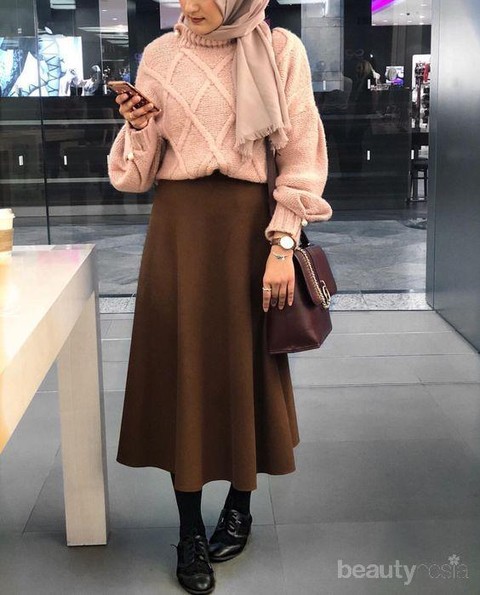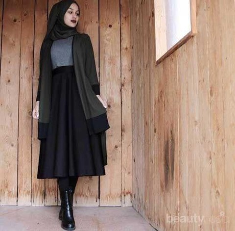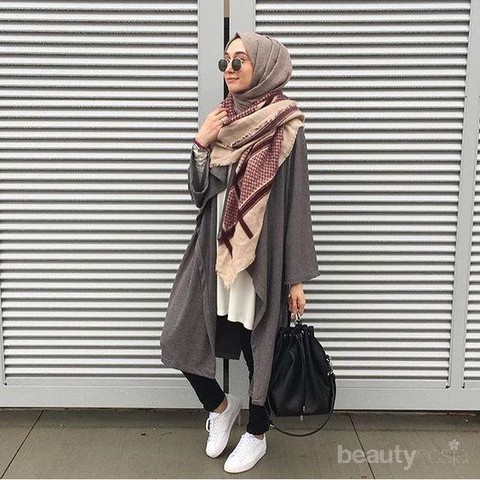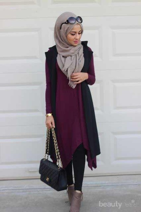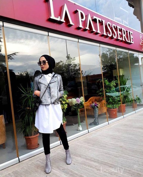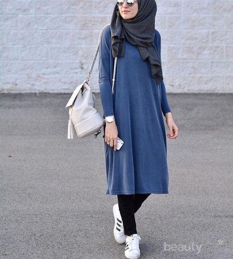 Selain padudan skirt dengan legging, kamu juga bisa memilih atasan yang panjangnya melewati paha kamu. Tujuannya sama seperti memadukan legging dengan skirt. Model baju tunik atau midi blouse bisa menjadi pilihan style hijab modern kamu!