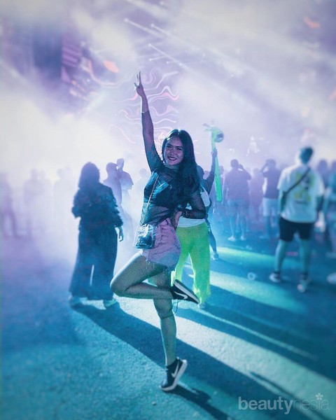 Dari caption instagramnya Titan menulis, "Day one DWP. I’m that girl you see in the crowd dancing and jumping absolutely un-sexily," namun, justru Titan terlihat effortless sexy dan hits banget kok dengan outfit tersebut!