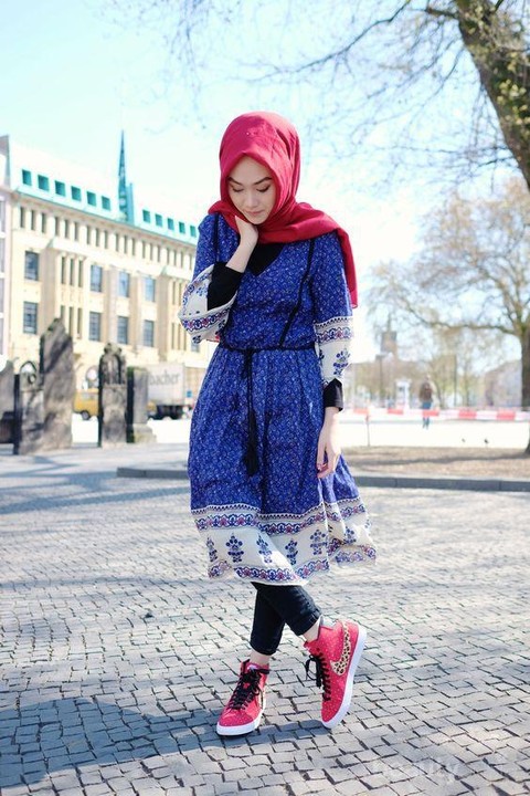 Siapa yang tidak kenal dengan selebgram cantik satu ini? Indah memadukan rok midi hijabnya dengan sneakers berwarna merah senada dengan hijab yang dikenakannya. Selain itu, Indah juga memakai dalaman legging untuk menutupi keseluruhan kakinya. Hal ini memang perlu dilakuakn jika kamu menggunakan hijab, ya, beautynesian!