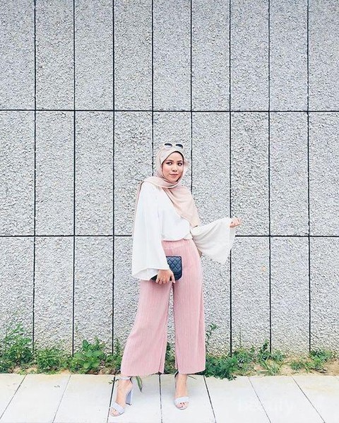 Alternatif lain, kamu dapat mengenakan atasan berwarna putih dengan celana kulot hitam. Padukan dengan hijab yang berwarna kontras dengan atasan putihmu. Dijamin para cowok akan terpesona dengan gaya busanamu kali ini.