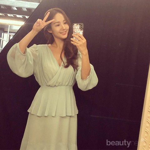 selfie yang diunggah melalui akun instagram pribadinya, Park Min Young yang terlihat begitu cantik tampak tersenyum cerah sambil menunjukkan pose