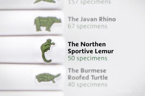 Well, ternyata logo buaya menganga di baju Lacoste digantikan dengan 10 jenis hewan langka nggak berbahaya. Diantara 10 jenis hewan tersebut, ada Harimau Sumatra dan Badak Jawa juga, lho! Penggantian logo ini ternyata tidak lain merupakan wujud dari program layanan peduli lingkungan yang bekerja sama dengan International Union fot Conservation of Nature. Penggantian logo ini juga bersifat sementara kok. Jadi ada waktunya nanti kamu bisa melihat lagi logo buaya menganga fenomenal merk baju ini.