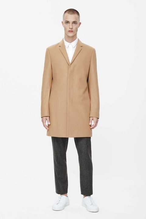 Terbuat dari bahan wol dan kasmir dengan warna cokelat kekuningan seperti karamel, coat berbentuk klasik ini merupakan item fashion yang tak mengenal zaman. Coat yang dijahit dengan bentuk lurus dan kerah kecil di bagian atas ini akan membuat siapapun yang memakainya terlihat rapi. Bahannya yang hangat juga akan melindungi pemakainya dari angin dingin. Tak perlu khawatir kalau lupa membawa sapu tangan, coat ini juga dilengkapi saku di bagian dalam yang tak terlihat dari luar.