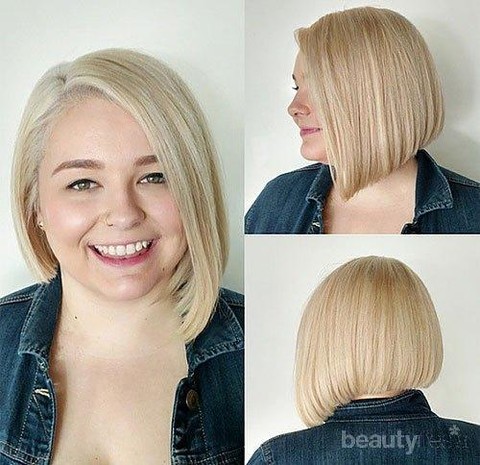 Untuk menambah sedikit model dan gaya pada rambutmu, potongan bob yang tidak simetris atau asymmetrical bob bisa menjadi pilihan. Pada model ini, rambutmu akan lebih panjang di salah satu sisi. Ditambah dengan belahan rambut samping, model ini cocok untuk “menyembunyikan” pipi chubby-mu!