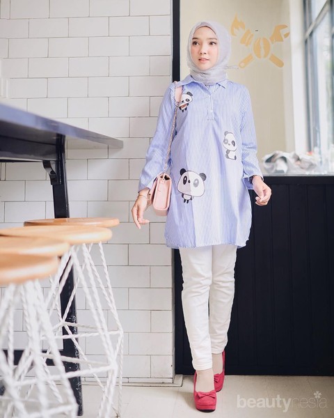 Pilihan outfit yang satu ini cocok banget untuk dipakai hangout. Kamu tetap bisa tampil santai kan meskipun dengan hijab rubiah? Padukan hijab ini dengan kemeja polos atau kemeja motif garis yang tak terlalu ramai corak. Siap jalan-jalan sama teman deh!