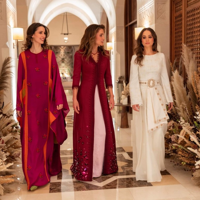 Di halaman berikutnya, simak gaya Ratu Rania dan Rajwa Al Saif di acara henna party Putri Iman.