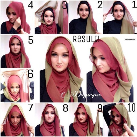 Foto: IstimewaSiapkan jilbab pashmina kesukaanmu sekaligus ciput ninja. Setelah mengenakan ciput ninja, lalu gunakan pashmina dengan satu sisi lebih pendek. Tarik sisi pendeknya untuk melingkari leher. Tarik ujung panjangnya melingkari leher di sisi yang berbeda hingga ke belakang leher lalu kembali ke depan. Rapikan dengan menyelipkan ujung yang tersisa.