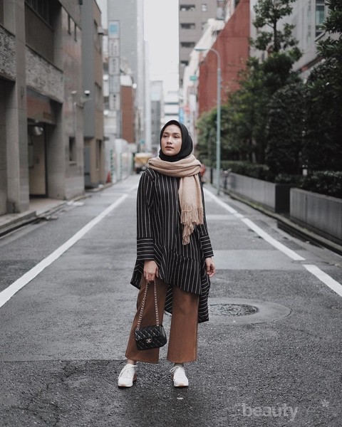 Supaya penampilan kamu makin oke, kamu juga bisa memadu padankan baju tunik ini dengan celana kulot warna cokelat. Jangan lupa untuk menambahkan aksesoris seperti syal supaya penampilan kamu makin maksimal.