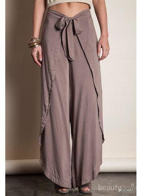 Pilihan celana yang tepat untuk pemilik paha besar ialah model celana palazzo. Celana ini bersiluet lurus dan longgar sehigga menyembunyikan pahamu yang besar. Celana ini akan membuat kamu aman dan nyaman.