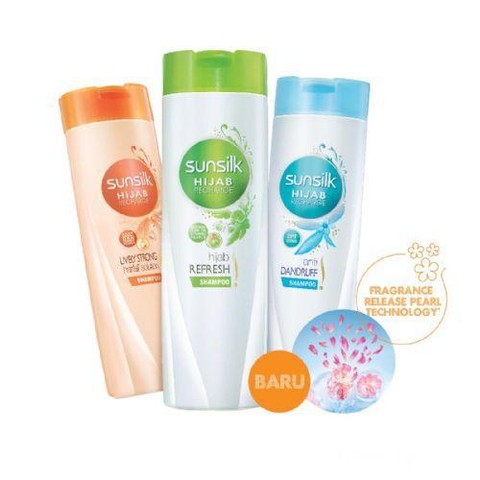 - Sunsilk Hijab Refresh yang memiliki formula buah tin yang berfungsi sebagai antioksidan dan mengandung fragrance release pearl untuk kesegaran rambut sepanjang hari.