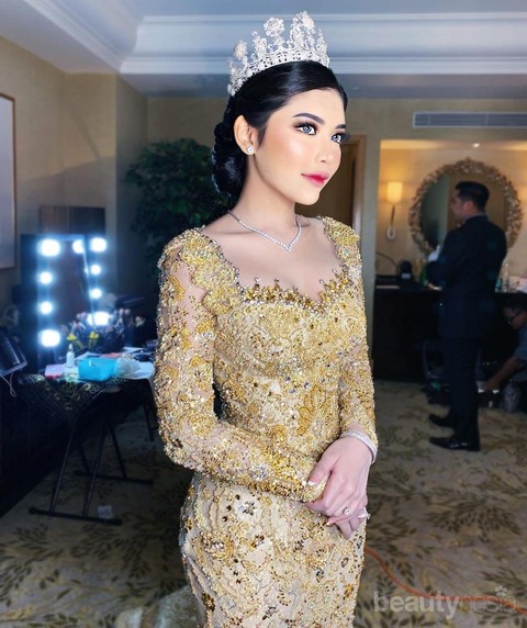 Rica Andriani juga melengkapi penampilannya dengan menggunakan mahkota berwarna silver yang membuat selebgram berusia 21 tahun ini terlihat seperti ratu. Tatanan rambut selebgram ini juga dibuat sanggul modern sehingga dapat memamerkan necklace berlian dan bagian atas gaun cantiknya yang berhias manik-manik.