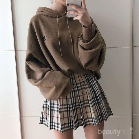 Siapa bilang hoodie tidak bisa dipadukan dengan rok? Cobalah padu padan hoodie dengan rok pendek kesayanganmu. Gaya ini sangat manis untuk digunakan saat menghadiri acara konser atau sekadar hangout ke mall. Kamu bisa memadukannya dengan flat shoes atau sneakers tergantung pada preferensimu.