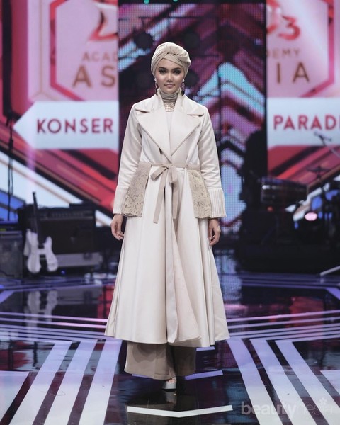 Rina juga terlihat anggun dan mempesona dengan perpaduan turban dan coat dress kekinian saat on air di salah satu acara televisi tanah air. Tidak ada yang menyangka ini merupakan salah satu tampilan berhijab Rina Nose yang terakhir sebelum akhirnya ia memutuskan untuk melepas hijabnya.